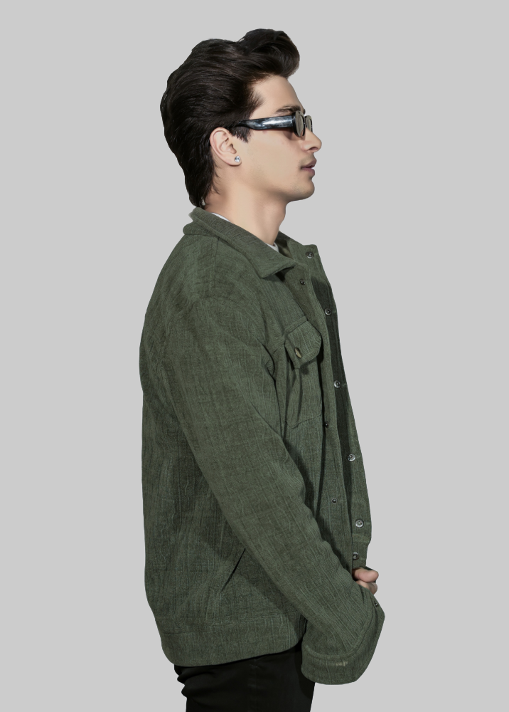 This Green Bonded Jacket is made from imported cotton fabric and features metallic ceramic coated buttons. It is fully and heavily bonded on the inside, providing both luxury and durability. Trust in its 100% guaranteed quality.